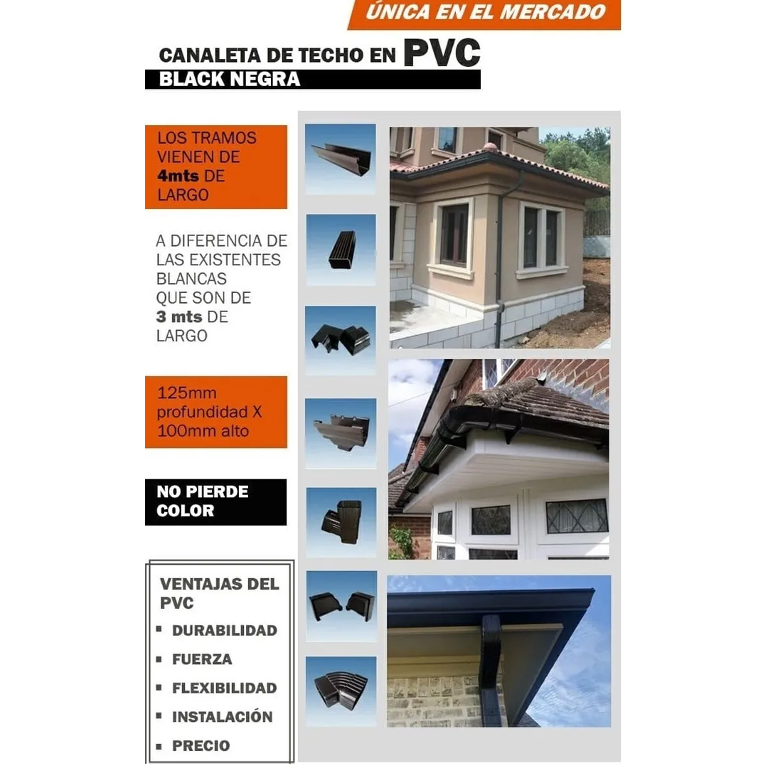 * Kit Canaleta de Techo PVC Negra con Anti Envejecimiento